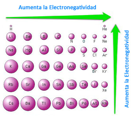 Los elementos con gran afinidad electrónica y altas energías de ionización, también serán muy electronegativos. Por lo tanto la electronegatividad aumentará en la tabla periódica como las propiedades indicadas.