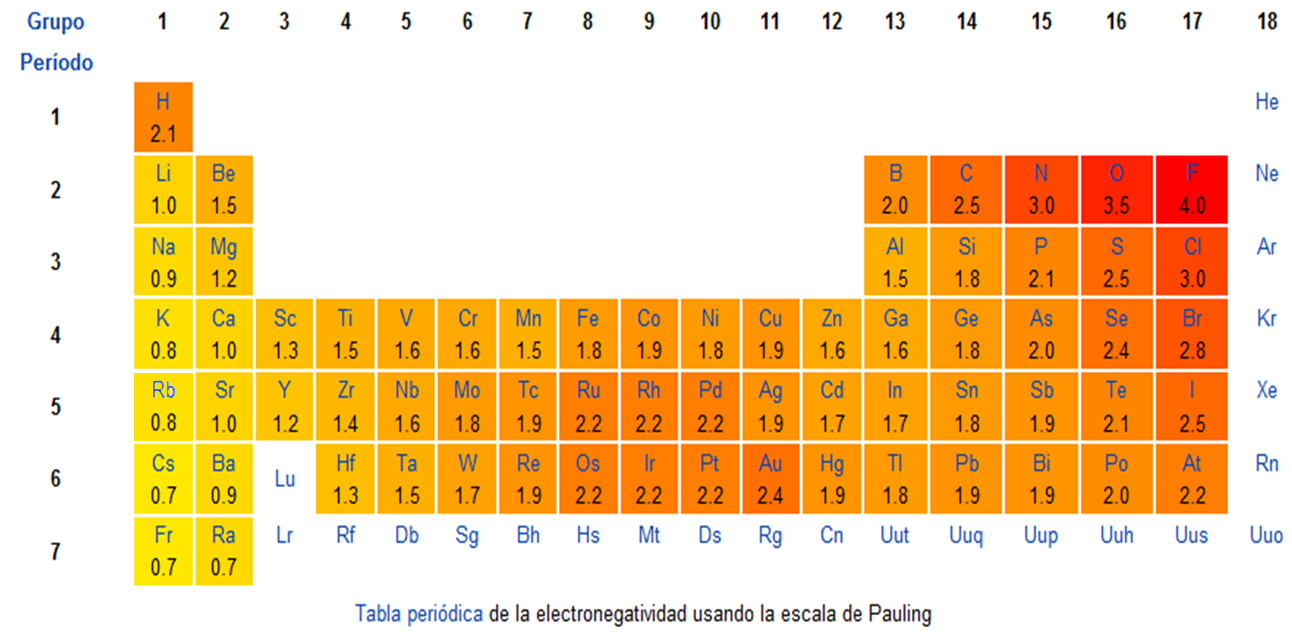 Para estimar la capacidad de un elemento químico de atraer los electrones del compuesto del que forma parte, Linus Pauling introdujo el concepto de electronegatividad. La electronegatividad es la tendencia que tiene un elemento para atraer hacia sí el par electrónico del enlace que comparte con otro elemento para formar una molécula.